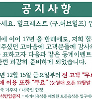 힐크레스트(구.허브힐즈) 무료 입장~!!!! 눈썰매장도 무료 개장~~~~!!!!! (0) | 2017.12.26 |
